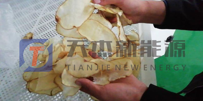 接下來是將土豆片分別放入托盤之中,放入土豆片烘干機進行烘干,土豆片烘干用多少溫度合適?前期先用低溫定色,設置溫度40℃左右,再慢慢升溫,后期烘干溫度控制在60℃一70℃, 要求土豆片含水量為10%以下。