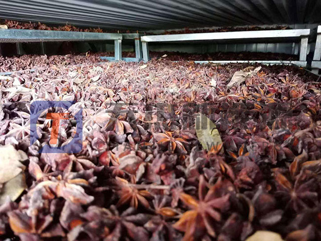 八角烘干工藝:采用八角烘干機(jī)對(duì)八角進(jìn)行烘干,烘干前需要先對(duì)八角進(jìn)行殺青,讓烘干后的顏色能達(dá)到要求。將八角放到接近燒開(kāi)的水里面浸泡3分鐘左右,待八角的顏色稍微變黃一點(diǎn)撈起,散開(kāi)放到八角烘干機(jī)托盤上送入烘干機(jī)里,開(kāi)啟八角烘干機(jī)進(jìn)行烘干。先將八角烘干機(jī)調(diào)為烘干模式,溫度調(diào)為60℃,烘干1個(gè)小時(shí)。注意這個(gè)階段不需要進(jìn)行排濕,主要是為了控制顏色。八角烘干機(jī)多少錢一臺(tái)?由于八角烘干機(jī)機(jī)型眾多,價(jià)格也從萬(wàn)元到幾萬(wàn)不等,歡迎您聯(lián)系我們咨詢。