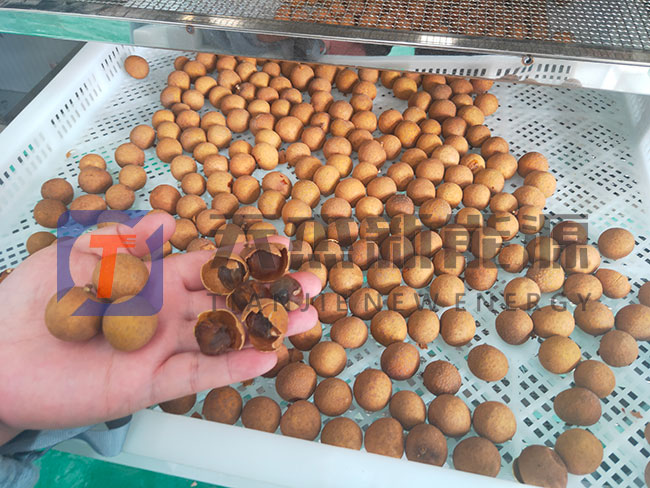 將清理好的新鮮龍眼放入托盤送入龍眼烘干機(jī)內(nèi)