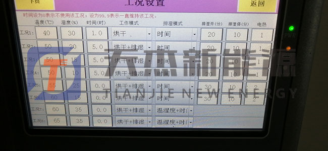 4、經(jīng)過5個小時的烘干后,把溫度調(diào)整為50℃-55℃,運行時間8濕度控制在40%。