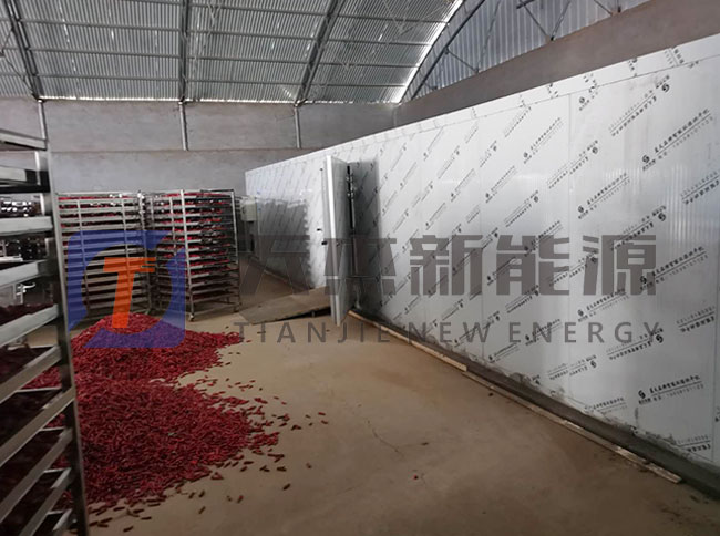 3、放入小辣椒烘干機(jī)進(jìn)行烘干
