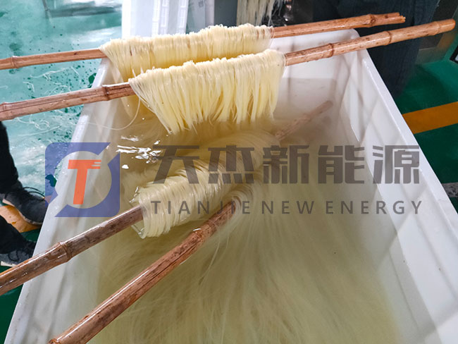2、高溫階段:米粉進入高溫階段后,內(nèi)部的水份就被逐步地蒸發(fā)出來并排出米粉外,米粉干燥均勻,成型好,進入冷卻區(qū)的米粉的水份基本保持在13%左右,米粉烘干房的溫度控制在38℃-42℃之間,注意避免水份過份烤干而出現(xiàn)的爆斷情況。