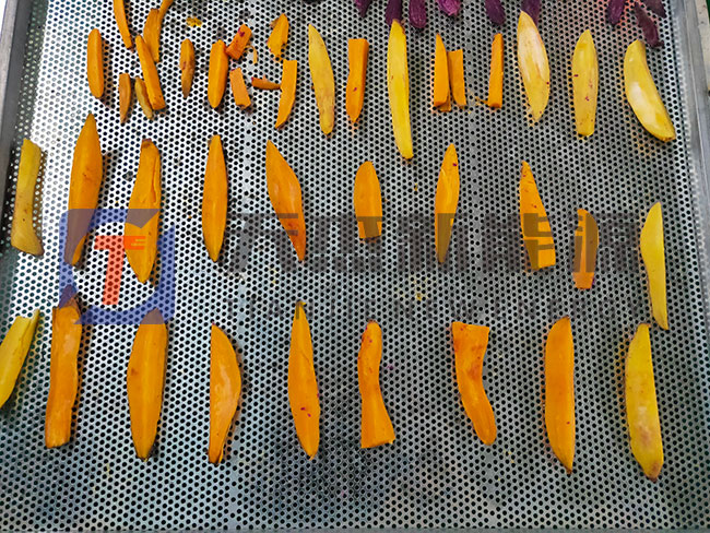將切好的地瓜片放入擺放在地瓜烘干機(jī)設(shè)備的托盤上。做到厚度均勻、擺放整齊。