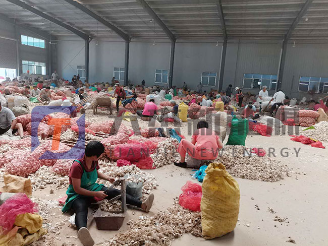 昭通大蒜烘干機(jī)招商項(xiàng)目安裝生產(chǎn)現(xiàn)場(chǎng) 先將有傷疤、軟爛干癟的大蒜頭剔除,選擇手感硬實(shí)、蒜瓣完整、顆粒飽滿、蒜肉潔白的大蒜頭。在將大蒜去皮、切片,清洗后輸送至已設(shè)置好參數(shù)的大蒜烘干機(jī)內(nèi)。 烘干好的大蒜由昭通大蒜烘干設(shè)備排出入制輸送機(jī)內(nèi)打包。歡迎聯(lián)系我們了解昭通大蒜烘干機(jī)價(jià)格。