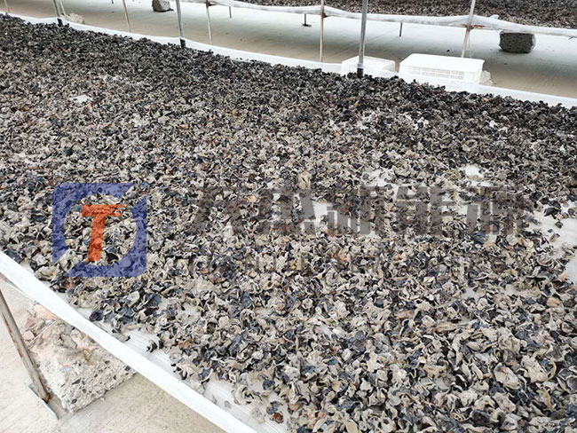 5. 恒溫保持5~8小時(shí)后將木耳烘干機(jī)溫度升55℃-60℃后整體烘干;黑木耳烘干八成時(shí),取出烘篩攤晾2小時(shí)后繼續(xù)烘干,待全部黑木耳烘干后即結(jié)束。