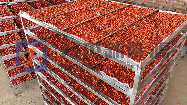 阜陽枸杞烘干機(jī)使用方法:客戶先把新鮮的枸杞鋪在物料托盤上,枸杞鋪好后,將盛滿枸杞的托盤推進(jìn)枸杞烘干機(jī)設(shè)備內(nèi)設(shè)置好對應(yīng)的參數(shù)進(jìn)行烘干。